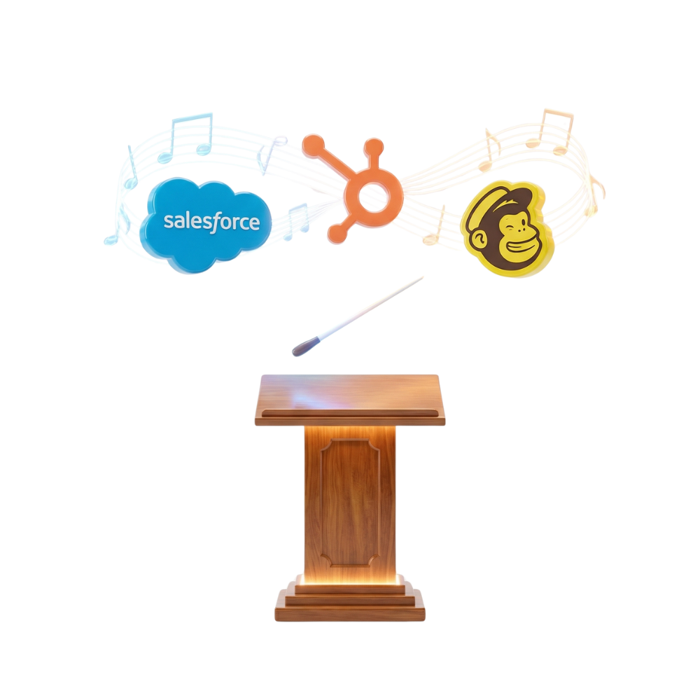AI orchestrates workflows across Salesforce, HubSpot, custom CRMs, Mailchimp, Constant Contact with behavioral triggers, segmentation & n8n/Zapier/Make integration.